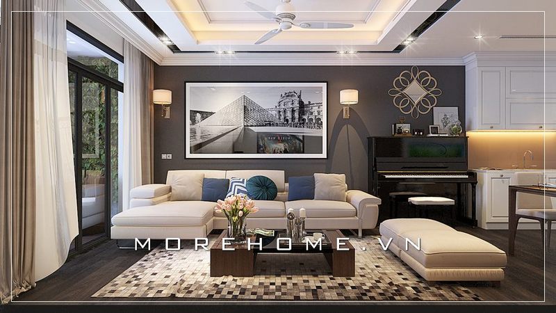 Morehome giới thiệu một mẫu thiết kế phòng khách chung cư hiện đại để đem lại một không khí sang trọng và hiện đại cho không gian sống của gia đình.